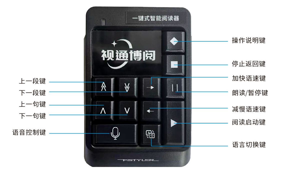 可选择按键式操作或更适合视障读者的智能语音控制式操作 |